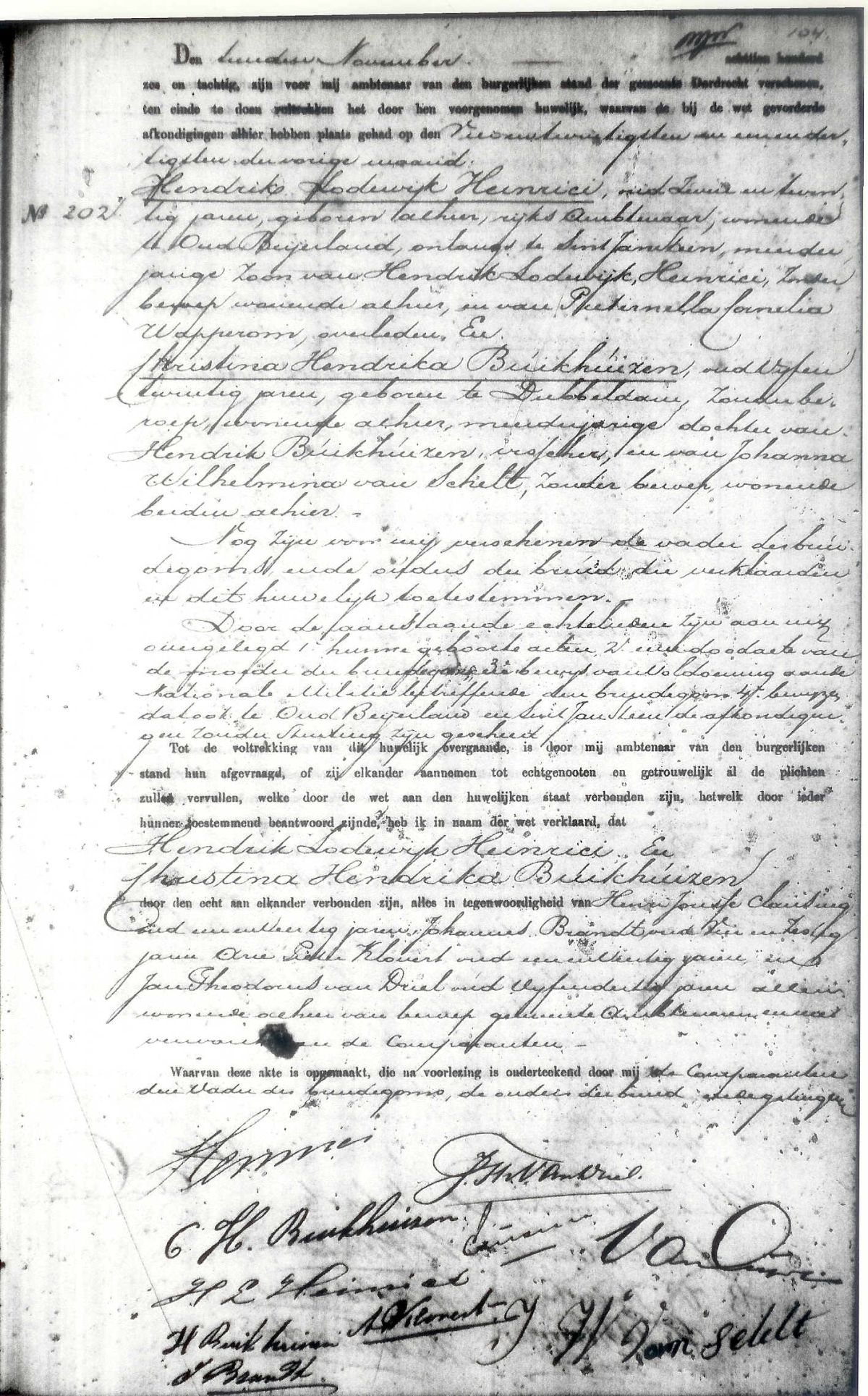 Heinrici was 27 jr, geboren alhier (op 01-04-1859) en wonende te OudBeijerland,