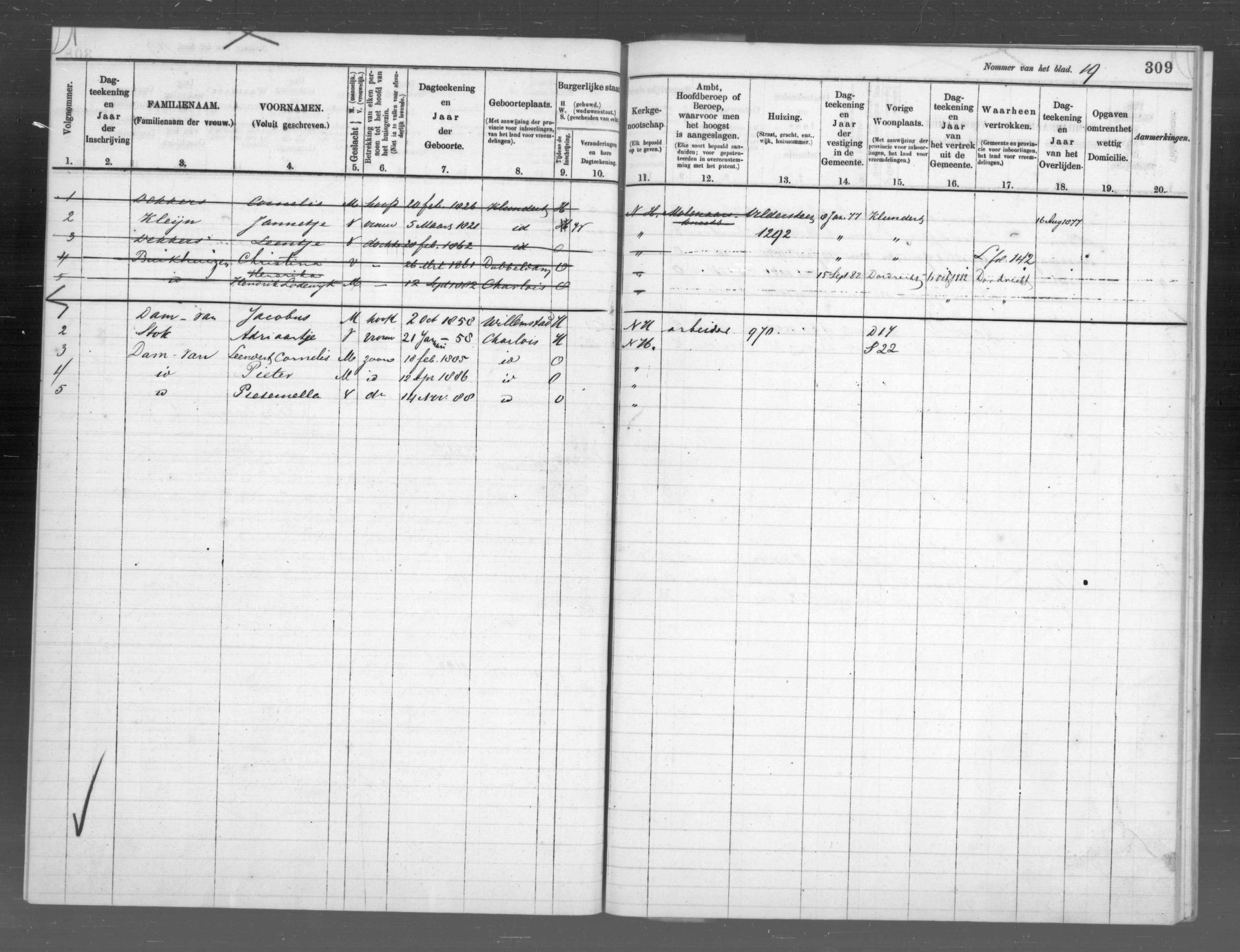 Voor inzage kopie Bevolkings Register folio 19: