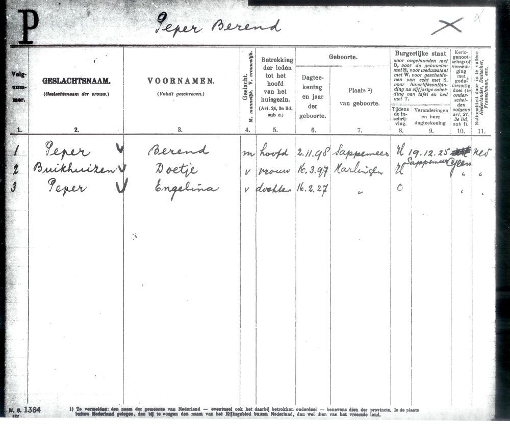 Doetje Buikhuizen is hier vanaf haar geboorte ingeschreven en woonde bij haar