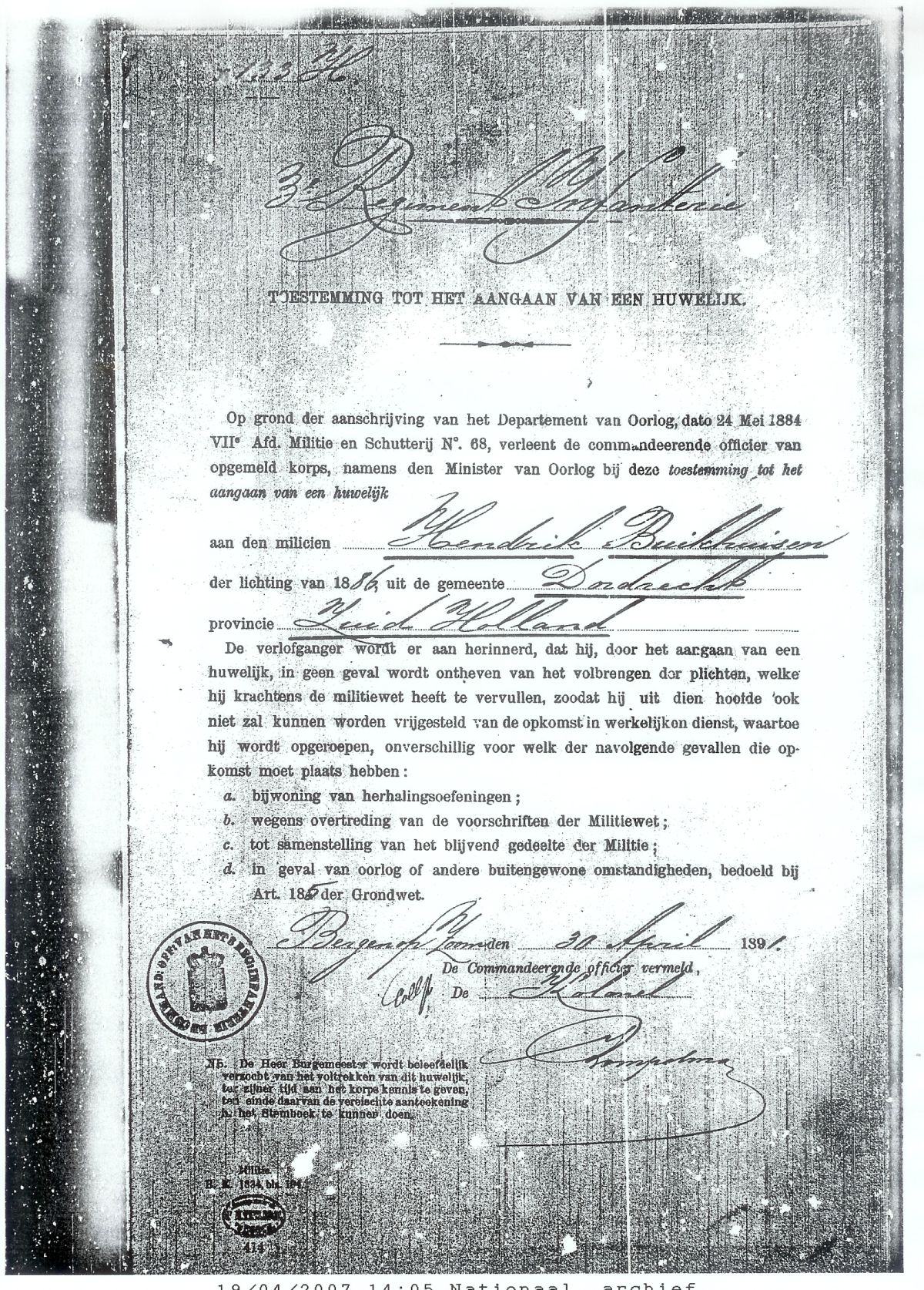Voor inzage kopie akte Nationale Militie: