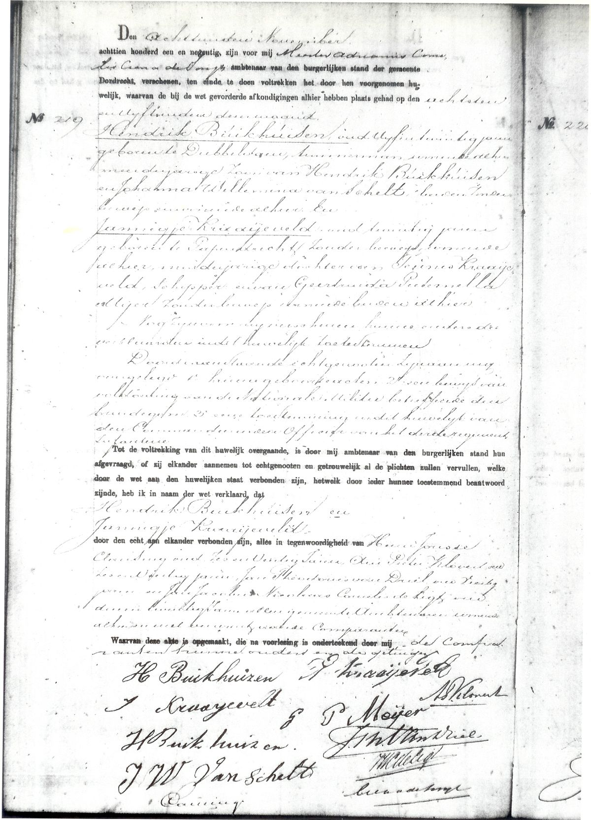 Huwelijks Register 1891 Dordrecht - archief Dordrecht, akte 219
