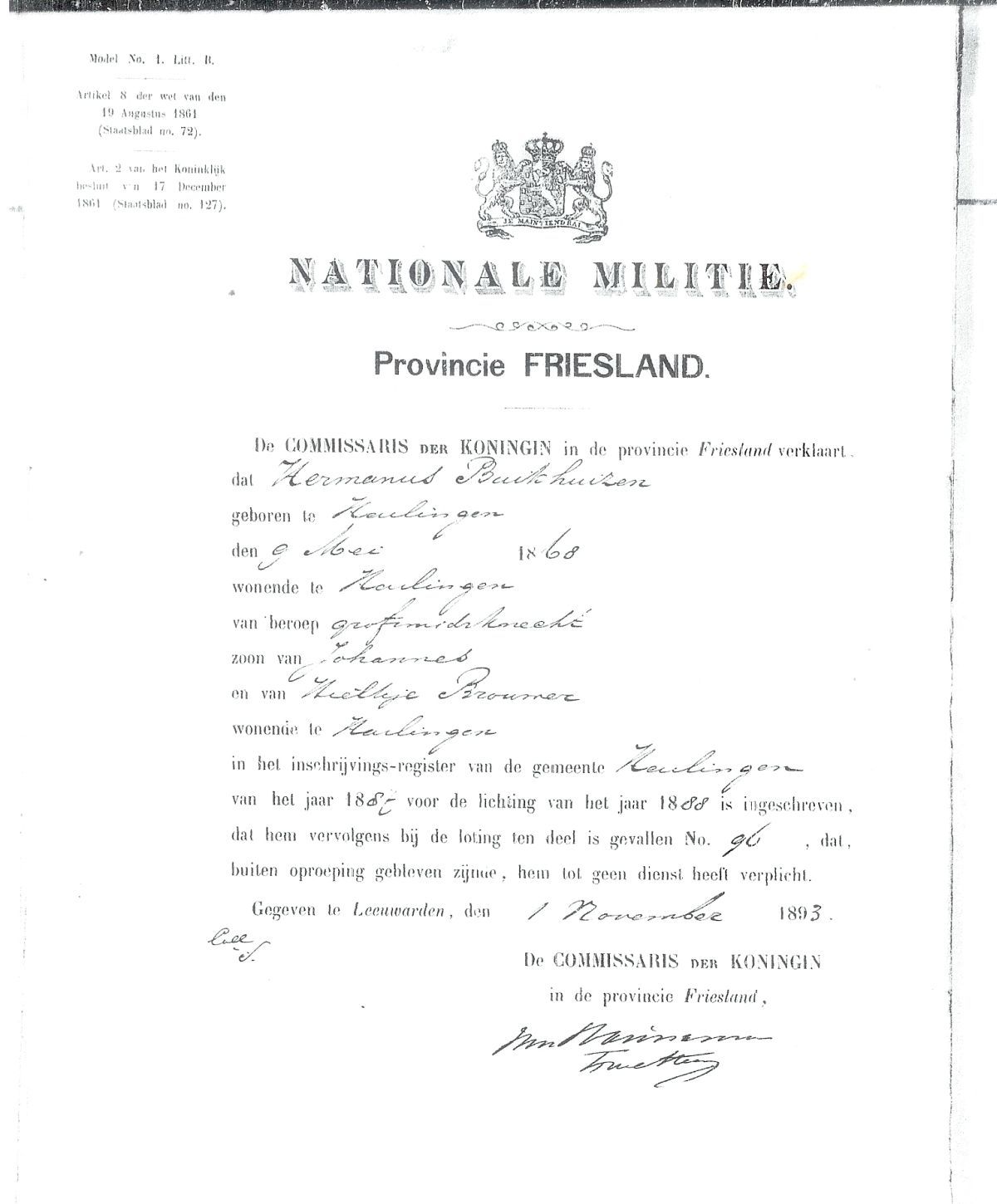 Van zijn vader Johannes Buikhuizen, van beroep tapper en wonende te Harlingen van 04-12-1893.