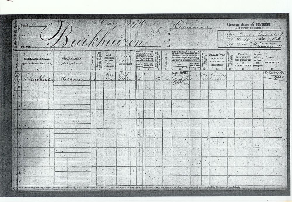 Er is wel een eigen gezinskaart aangemaakt, maar Hermanus heeft op deze adressen