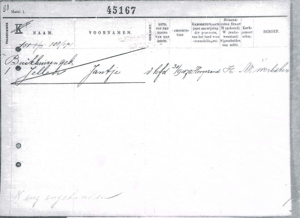 Voor inzage kopie Bev. Reg. gezinskaart Jantje Jellen: