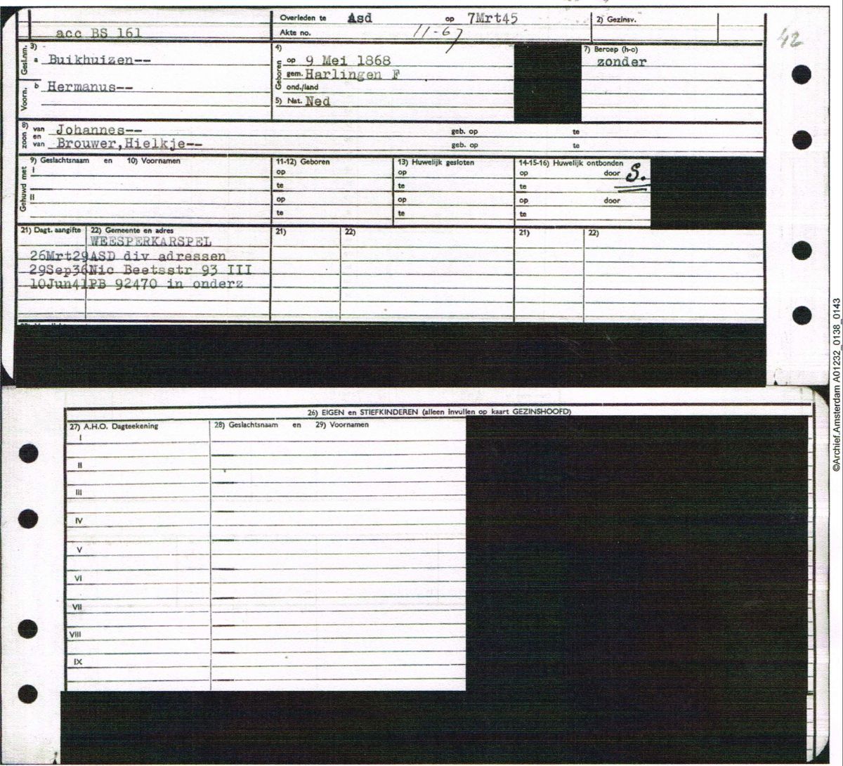 Bev. Reg. Amsterdam - Gezinskaart Antje Buikhuizen