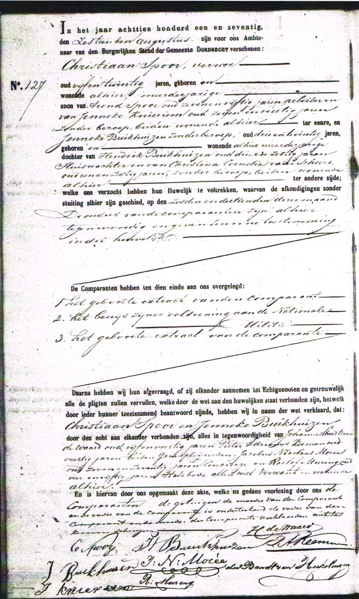 Huwelijks Register 1871 Dordrecht - archief Dordrecht, inv. Nr. 142, akte 127