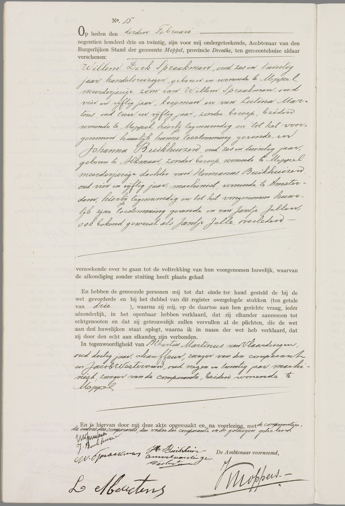 beiden wonende te Meppel, hierbij tegenwoordig en tot het voorgenomen huwelijk hunne