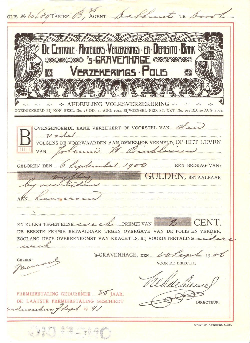 Johanna Wilhelmina is geboren op 06-09-1902 te Dordrecht, des voormiddags te een uren,