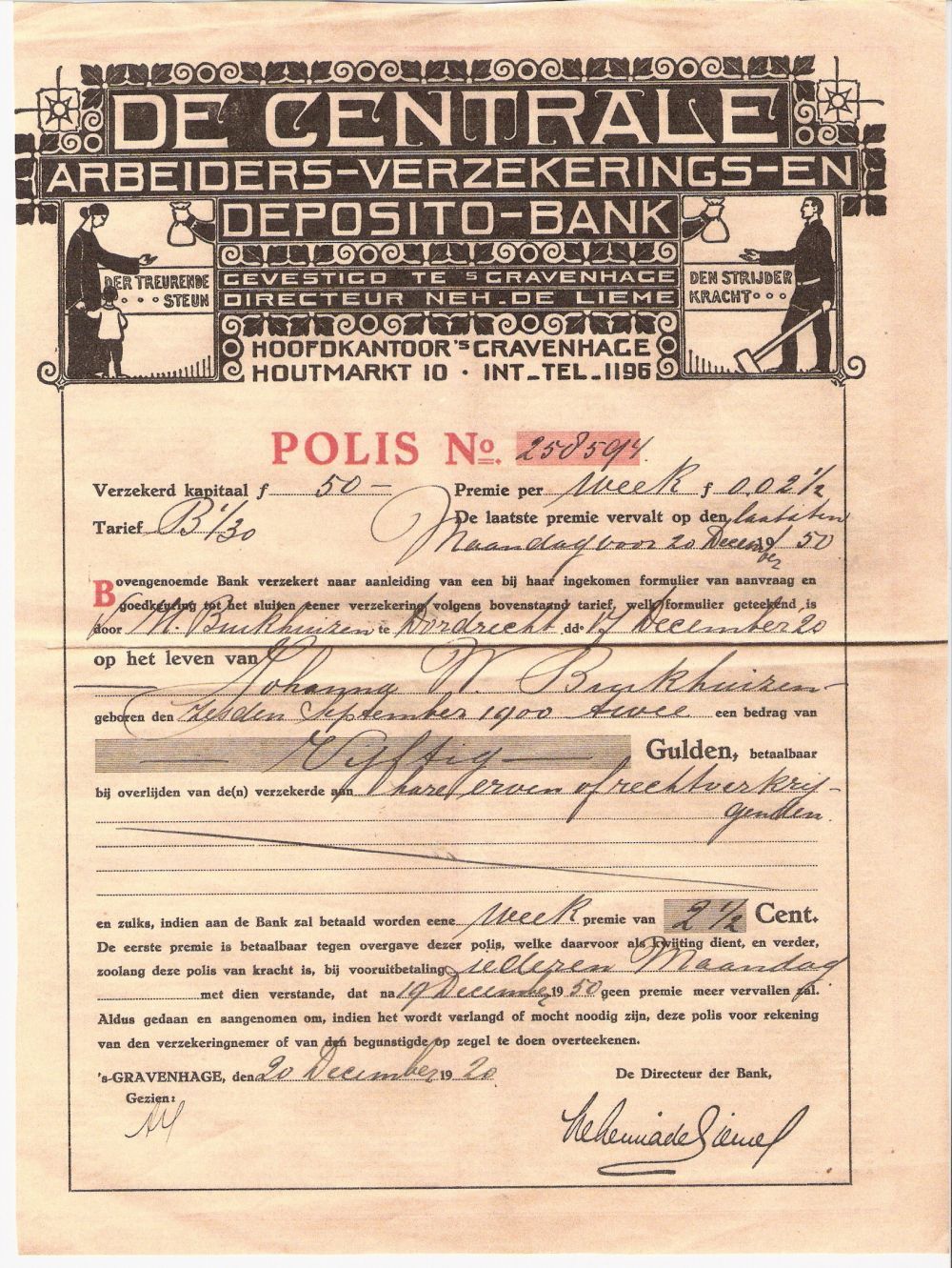 Getuigen: Johan van Bezeij, 32 jr, gemeente ambtenaar en Jan Vogelaar, 52 jr, gemeente