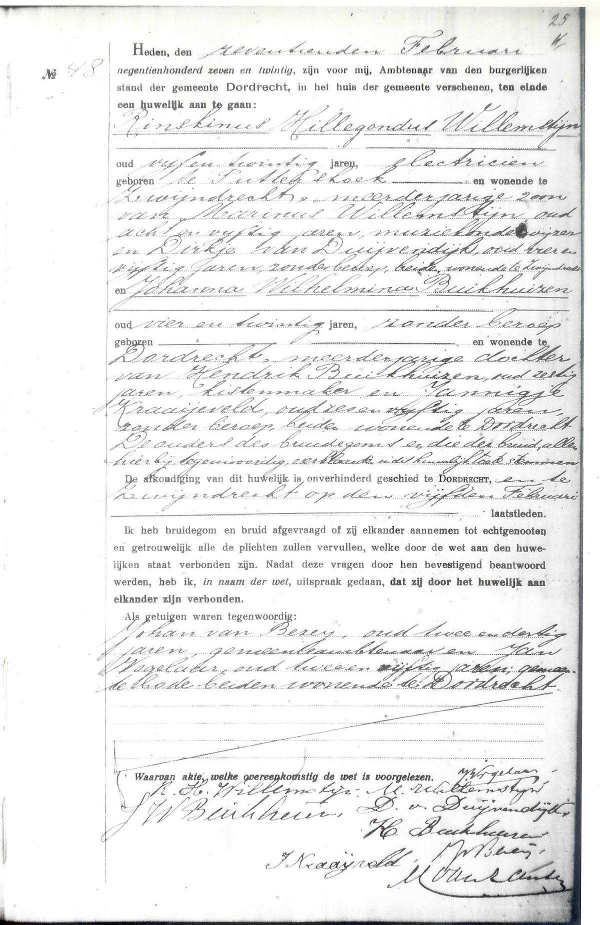 Huwelijks Registger 1927 Dordrecht, archief Dordrechtarch.nr 256 inv.nr. 198, akte 48 - folio 25