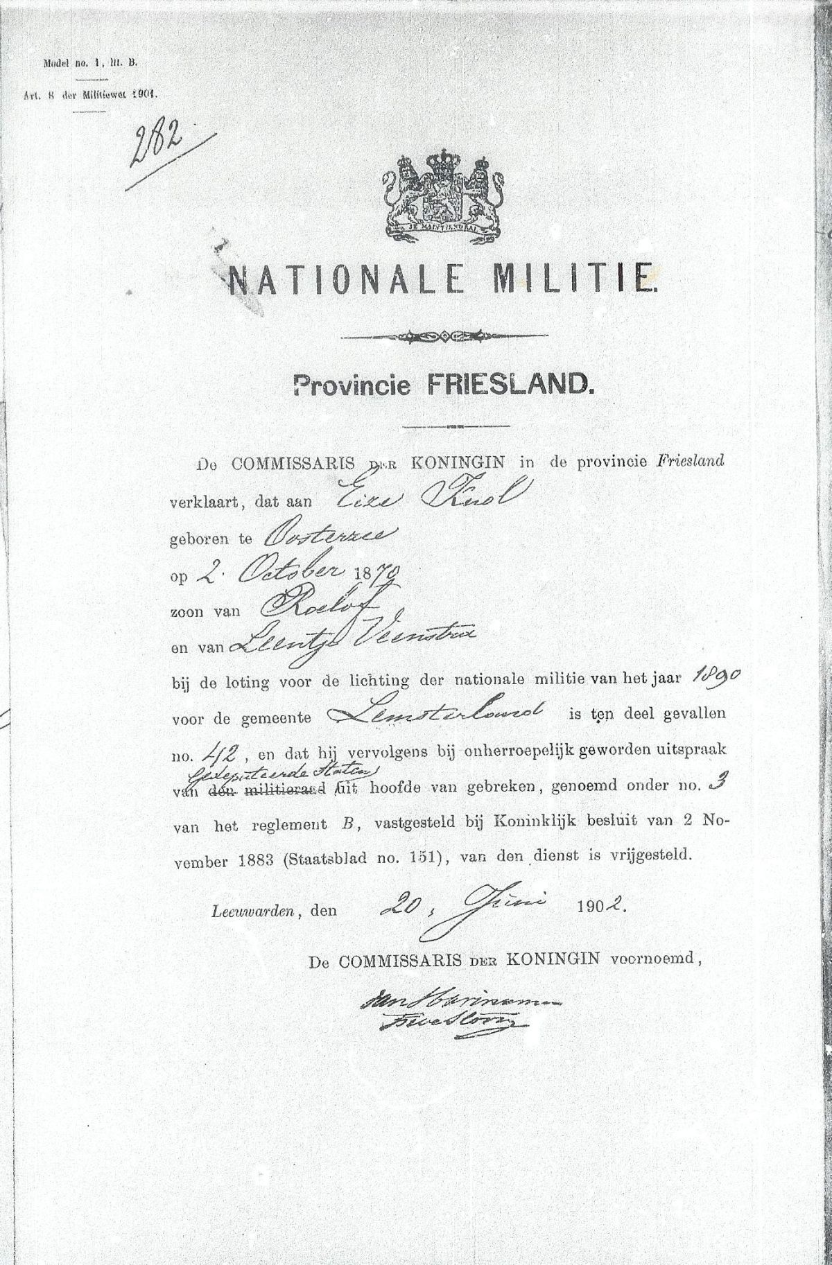 Voor cerificaat Nationala Militie Eize Knol