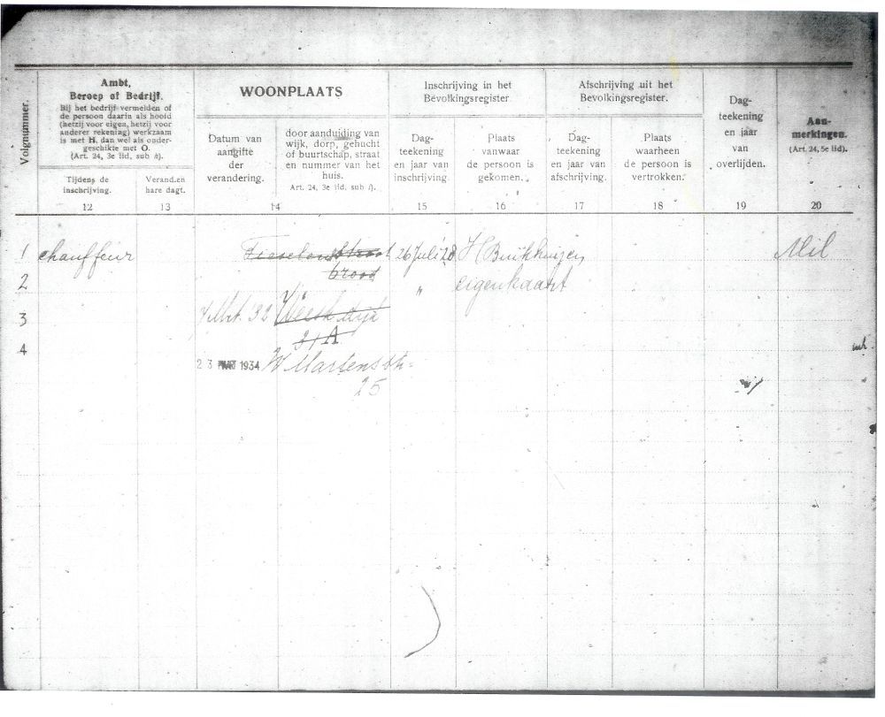 Teunis was hier chauffeur en kwam van de gezinskaart van zijn vader. Pieternella